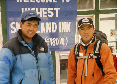 Bild 47: Zwei Everestbezwinger, der Wirt von der Snowland Inn Lodge in Gorakshep und Dorje Pemba Sherpa. Es ist verblüffend wie viele Sherpas im Khumbu schon oben waren