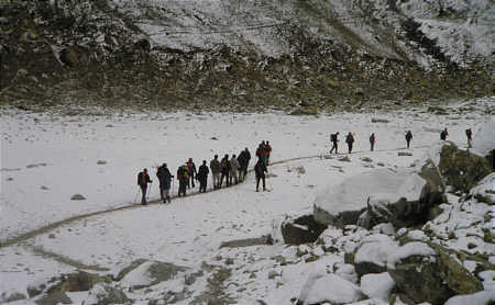 Bild 1: frühmorgens startet eine Gruppe zum Base Camp
