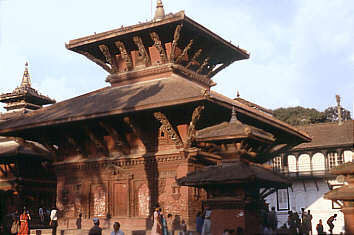 gerne die jungen Frauen betörte. Da die könig von Nepal ja auch als Inkarnationen von krishn gelten, ist es verständlich dass in allen drei Königstädten ein Krishnatempel steht.