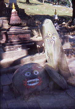 Im Nordwesten von der Altstadt von Kathmandu steht auf zwi Hügeln der Tempelkomplex von Swayambunath. Der wichtigste Teil ist die große Stupa, die von mehreren Tempeln, Klöstern und Häusern umringt ist.