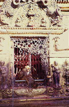 Da dort die Pilger Opfergaben hinlegen schauen die Affen immer wieder vorbei, ob etwas essbares darunter ist. Besonders begehrt sind natürlich Puffreis Körner.