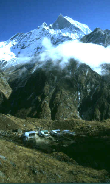 Blick auf den Machapuchare und die Ostwand des Sanctuary