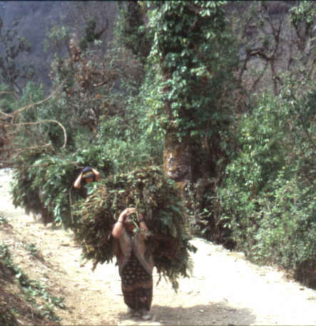 Frauen bringen die Blätter für ihr Vieh nach hause