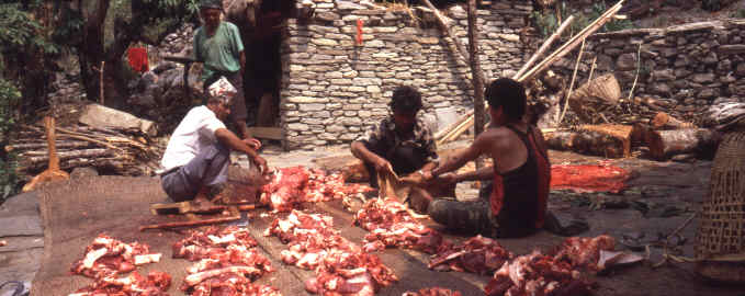 Ein Büffel wurde geschlachtet und wird jetzt in 16 identische Portionen zerteilt