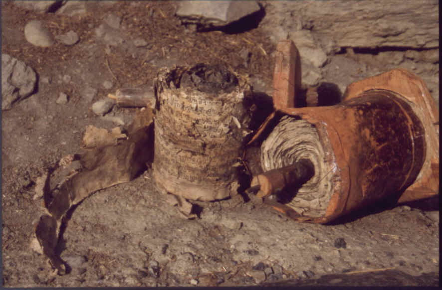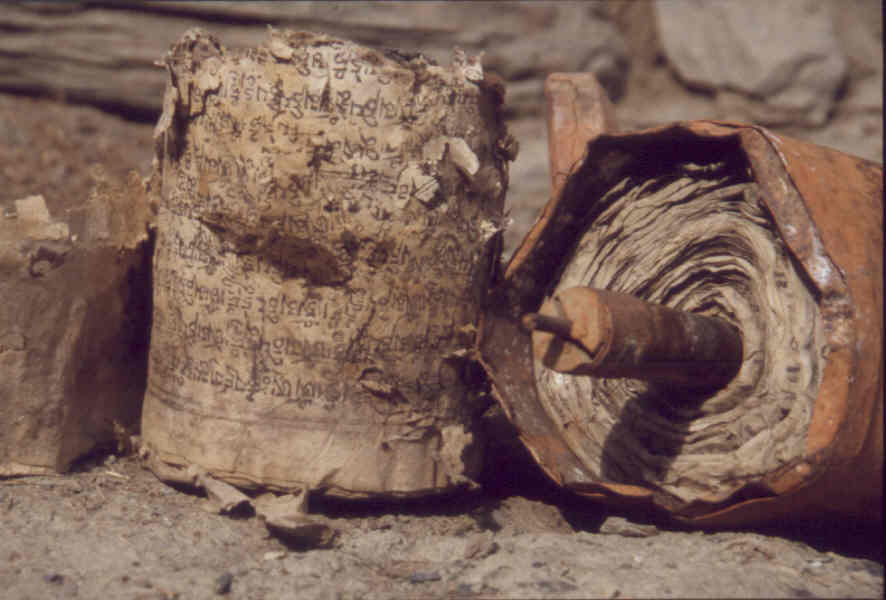 Im inneren sind unzählige Seiten mit Gebeten aufgerollt