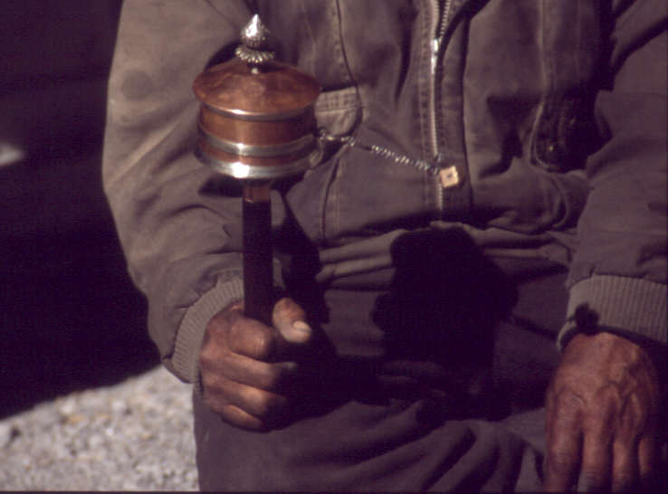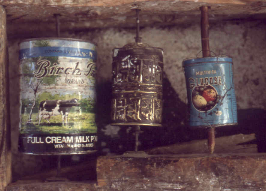 Die tragbaren kleinen Gebetsmühlen werden noch immer von vielen Leuten mitgenommen und durch eine leichte