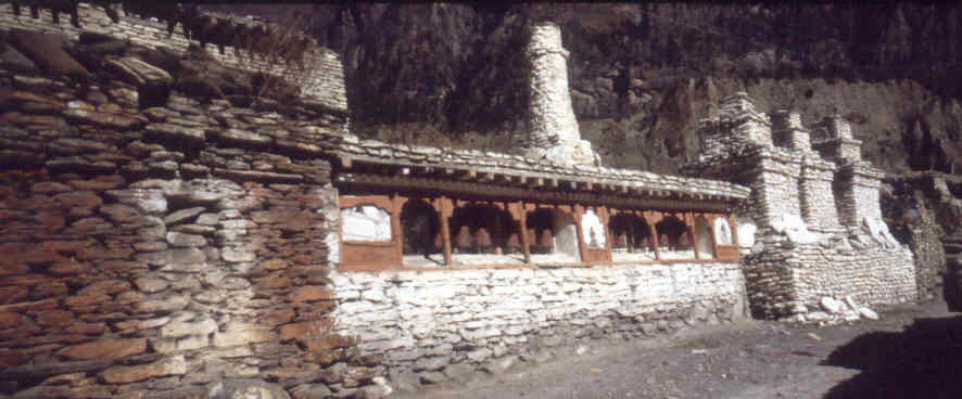 Ein Teil der großen Gebetsmühlenmauer in Tukuche