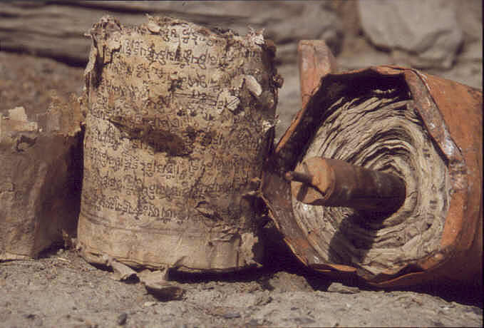 Der text ist immer in Tibetisch geschrieben, auf dem Bild steht er allerdings auf dem Kopf
