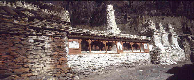 Ein Teil der großen Gebetsmühlenmauer in Tukuche
