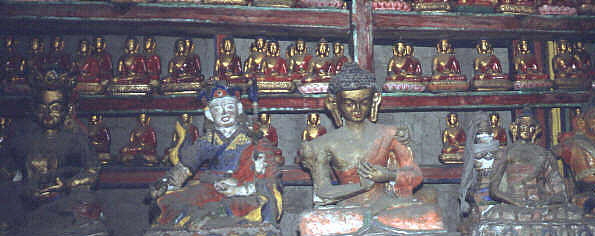 Im hinteren Rundgang stehen tausende von Bhuddhas und Figuren im dunkeln, sie sind deshalb nur mit einer Taschenlampe zu sehen