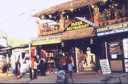 Eine typische Mischung: Restaurant, Ausrüstungsshop und Trekkingagentur