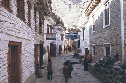 Marpha duckt sich in eine Seitenbucht des Kali Gandaki Tals und ist so einigermaßen vor dem Wind geschützt