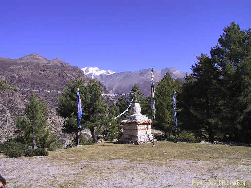 the monk retires to a house lower down the valley. While we were there a party of townsfolk from Pisang came
