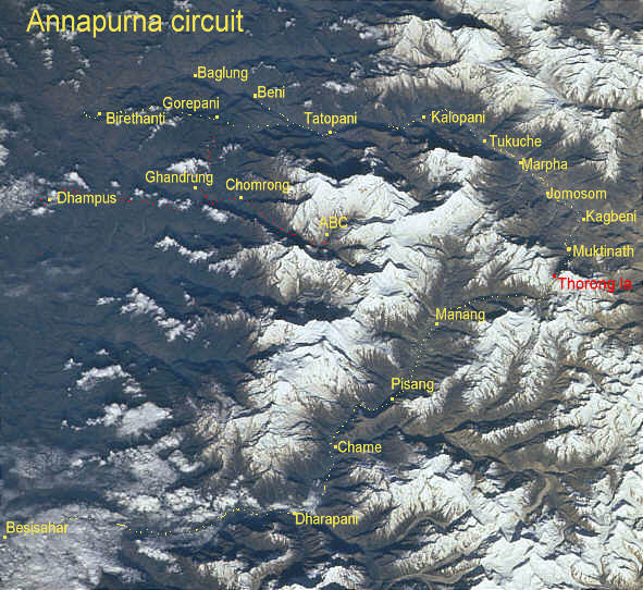 space picture of the Annapurna circuit