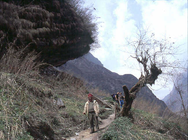 From Chomrong the trail leads through a narrow valley to the Annapurna sanctuary. You will not find any more villages. It takes normaly 3 days to go to the ABC. Some people take