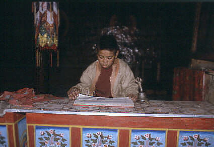When we visited the Gompa, the little monk showed us everything, but then He had to hurry to the village. Because there was not enough rain in the winter, the village people