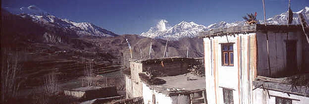 Chaingur with its typical colours, at the horizon is the Daulagiri