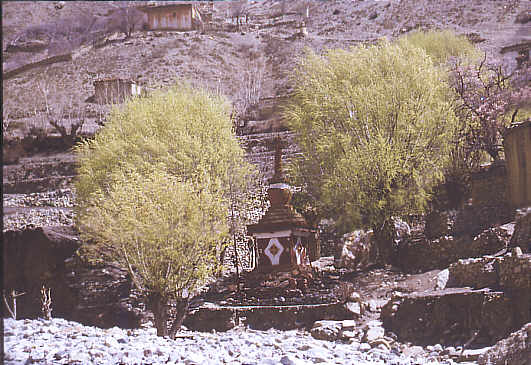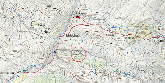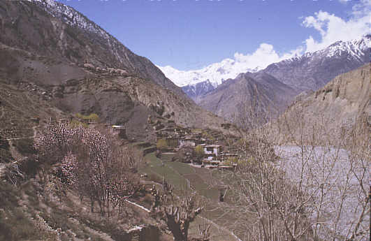 It is not very easy to find, because you can not see the village from the main Kali Gandaki trail. The valley is in the est of the Kali Gandaki. The river digged deep into the mountain,