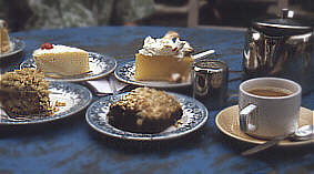 das köstliche Essen schmeckt einfach lecker dazu gib’s Tee und andere Getränke, Zigaretten und selten