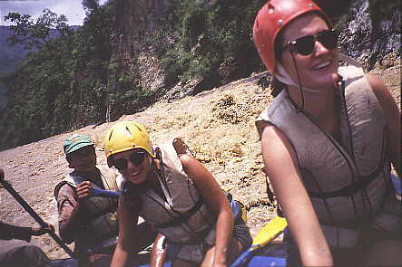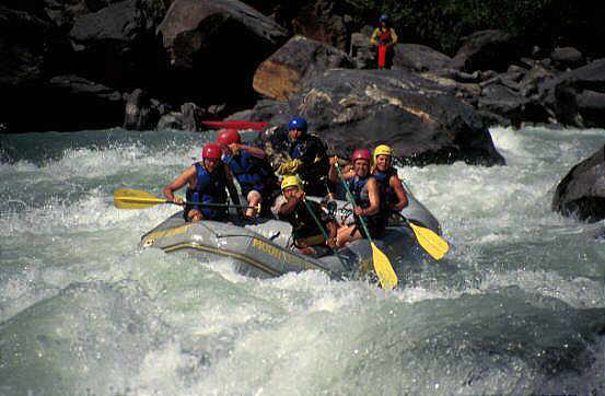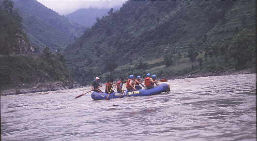Mittlerweile sind mehrere Flusssysteme erschlossen. Ein sehr beliebte Tour ist der Trisuli. Die Einstiegstelle ist auf der Straße zwischen Kathmandu und Pokhara, kurz nachdem man von den hügeln zum fluss heruntergekommen ist, und jeder der dort fährt, sieht oft tief unten in der Schlucht die bunten Raftingflöße . Früher dachte ich, das dies eher langweilig sei, doch als ich dass erste mal gefahren bin, merkte ich wie spannend die Stromschnellen auch auf diesem anscheinend so ruhigen Fluss sein können-. der Vorteil dieser Tour ist, dass man immer in der nähe der großen Strasse bleibt, ohne dass man allerdings davon gestört wird. Doch so kann das Gepäck von der Küchencrew schon zum nächsten Picknick -oder Campingplatz gefahren werden, und mann kommt sozusagen schon an einen gedeckzten Tisch! es gibt auch eine ganze Reihe Raftinglodgen auf der Strecke. Je nachdem was man weitermachen will, kann man nach 21/2 Raftingtagen aussteigen und anschließend weiter mit dem Bus nach Pokhara fahren oder man paddelt bis zum Chitwan Nationalpark.