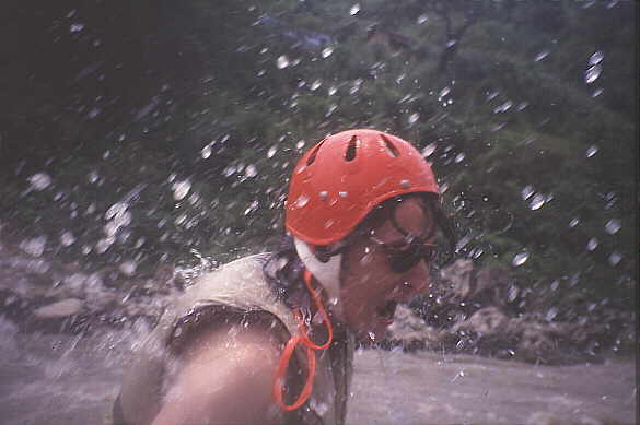 Martin hatte ich in Tibet kennegelernt und wir sind im Juni den Trisuli heruntergefahren, hier hat er geade einen ordentlichen Schwall Wasser ins Gesicht bekommen.